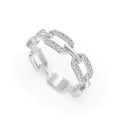 Introducing the Connection Band, a striking piece that seamlessly blends the timeless appeal of a chain link design with the sophistication of fine jewelry. This unique ring showcases an intricate link chain, where alternating links are meticulously adorned with round-cut diamonds. The result is a dynamic, flowing look that captures attention with its elegant and bold design.