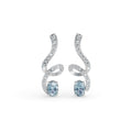 "Elevate your elegance with the Aquamarine Twist Earrings, a captivating blend of grace and sophistication. Featuring delicately curved gold or silver adorned with sparkling lab grown diamonds, these earrings flow into a mesmerizing aquamarine Colorstone centerpiece, echoing the serene beauty of ocean waves. Designed to complement bridal elegance or add a statement of luxury to any outfit, these earrings are a timeless treasure for every jewelry collection.